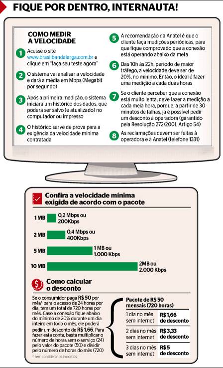 Os usuários devem medir a velocidade da conexão e, em caso de falhas, exigir um desconto à operadora